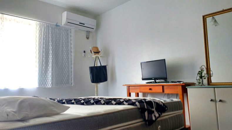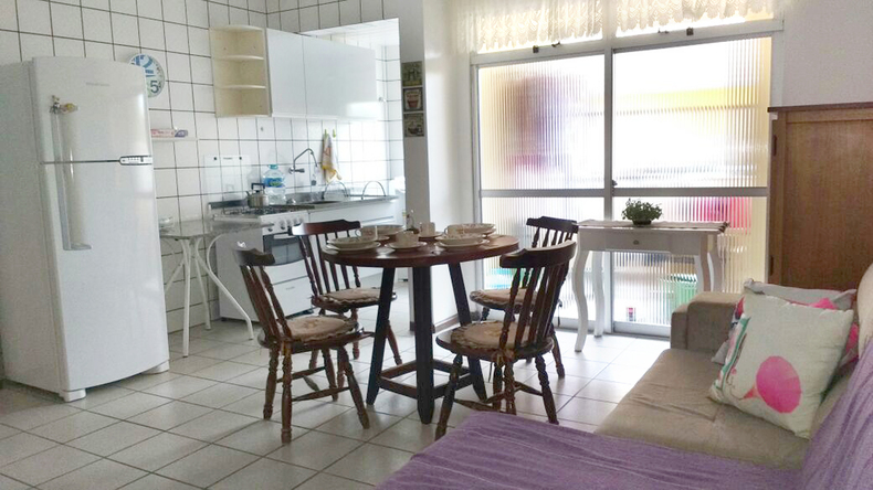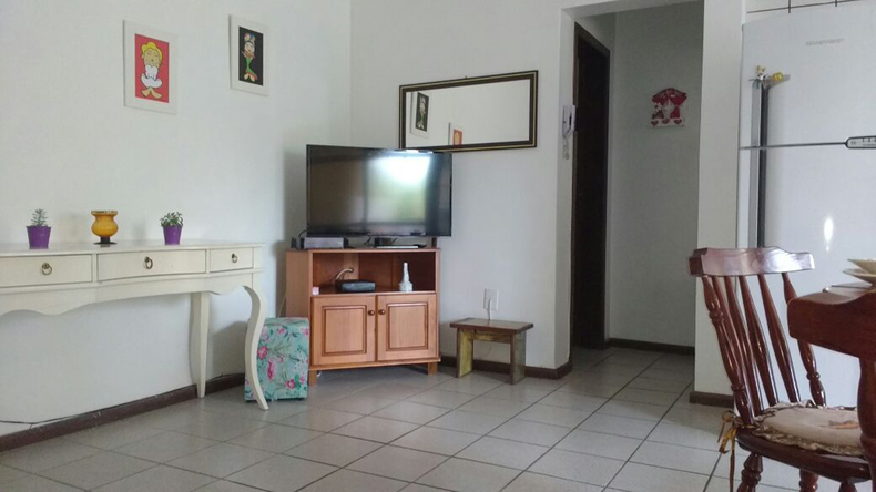 Mi departamento es cerca de la playa (1 cuadra), restaurants, tiendas y actividades para famílias. Cerca del centrinho de Canasvieiras, supermercados, bancos, panaderías, tiendas, etc. El departamento es perfecto para parejas, viajes comerciales y famílias (con niños). Acepta Pets. Tenemos Wi-fi free, para su diversión, nel dormitorio tenemos ar condicionado, y una tv a cable. En la sala de estar, tenemos una smart TV 40” (a cable), sofa cama y mas 2 colchones, nevera gran, ventilador, lavadora, platos, microonda y area para asados. Hay cochera privativa interna al edifício. Mínimo 10 noches.