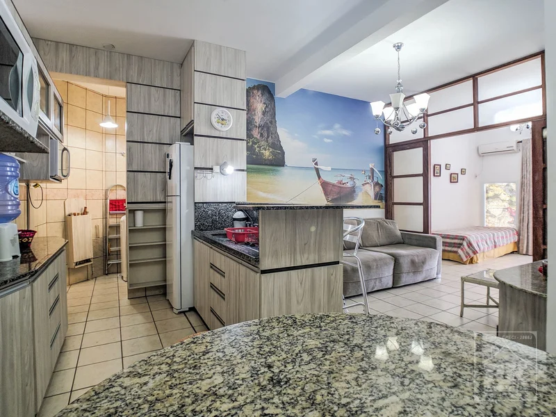 Condominio sobre Rua das Gaivotas a 30 metros de la playa con aptos de dos dormitorios y dos baños, sala dividida, cocina completa aire en dormitorios, tv, wifi, balcon parrilla, lavadero con lavaropas,