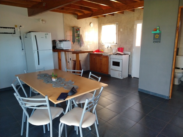 Alquiler dúplex X día para 5 pers. en barrio San Eduardo del Mar a 5 km de Miramar y 25 kms de Mar del Plata 400 mts de ruta 11. Zona de descanso, pesca, caminatas. 2 Dormitorios en planta alta 1 con cama matrimonial y otro con 2 cama 1 plaza. En planta baja comedor con sofá cama, cocina baño patio interno con parrilla, wifi, cable, Directv prepago. vajilla, heladera con frizer, microondas, pava eléctrica, etc. entrada de vehículos. NO ACEPTO MASCOTAS.