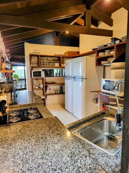 La casa completa , 350 m2 tiene cocina, comedor diario, sala de estar con comedor y chimenea a leña , aire acondicionado, terraza deck, toilete . Espacio con barbacoa. Cuatro suites. Estacionamiento para 3 autos.
