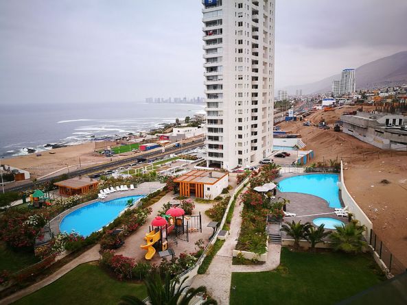 El departamento se encuentra ubicado en un exclusivo condominio de barrio residencial frente a Playa Huayquique (3 minutos caminando), esta equipado para 4 personas, y posee dos dormitorios, uno en suit con cama King, y un dormitorio con cama nido de 1 plaza y media. El depto cuenta con dos baños, cocina equipada y living comedor con vista al mar, ademas con 5 km de áreas verdes, con piscinas, juegos infantiles, zona de quinchos, cancha de tenis, gimnasio, servicio de lavandería, estacionamiento y C.C.S.S. Posee dos dormitorios, uno de ellos en suite y cada uno con closset y tv por cable, WiFi, estacionamiento privado, cada ventanal posee mallas de seguridad para niños. Todo especialmente pensado en vacaciones familiares y seguras. No te arrepentirás.