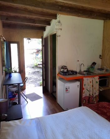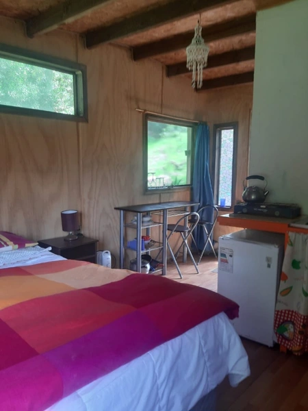 Cabañita equipada para 2 personas, en un ambiente con baño privado.
