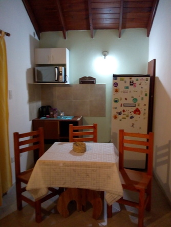 1 dormitorio,estar.baño.cama de dos plazas, 2 camas de una plaza,microhondas,pava electrica,aire acondicionado ,heladera ropa de cama.termotanque eléctrico,vajilla, DirecTV.televisor led.NO incluye toallas y toallones.tiempo minimo 4 dias