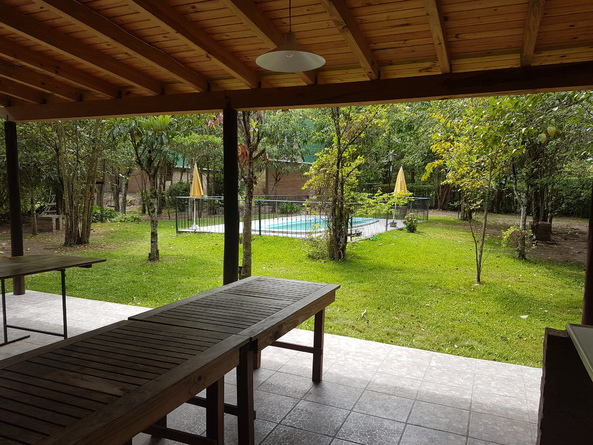 Amplio parque con arboleda, ideal para estar en tranquilidad y en contacto con la naturaleza, pileta de natación con reja perimetral y quincho con asadores.