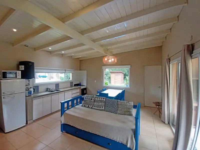 Alquiler temporario casa en La Caleta , pegado a Mar de Cobo a 30 km de Mar del Plata , a 800 mts del mar y 200 mts del arroyo , para 5 personas, 2 habitaciones, smart tv 32, y tv LED , WI FI , directv, parrilla, estufa a leña, caloventores y turboventiladores , heladera con freezer, cocina con horno , microondas , pava y tostadora eléctrica, parrilla y patio semicubierto , reposeras , vajilla completa, entrada de auto, sobre un lote propio parquizado de de 405 mts2 propios sin lugares comunes que compartir
