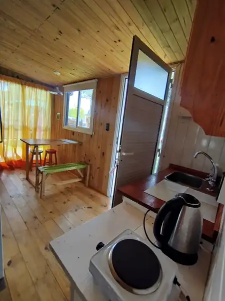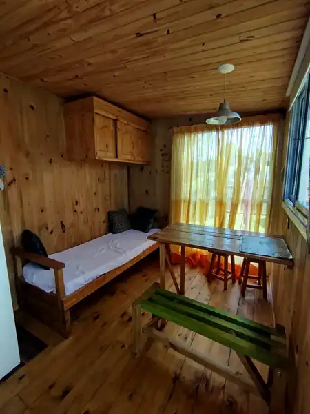 Se alquila por temporada casilla rural equipada, ideal parejas solas o con un niño. Está ubicada a 600 mts del mar en un un entorno verde pintoresco. En el jardín tienes parrilla cubierta, mesa con sombrilla y para descanso y tomar sol dos reposeras de madera con colchoneta, por las noches podrás contemplar el cielo💫💫 acostado. Tiene una habitación con cama matrimonial y en la cocina-comedor sillón para cama. El baño con pediluvio, pileta e inodoro (sin bidet). La cocina tiene artefactos eléctricos.
