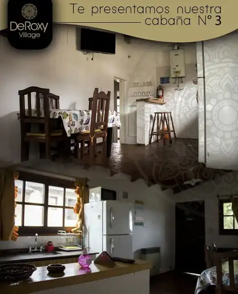 Living comedor con muebles de algarrobo, diván cama con carro (para 2 personas), ventilador de techo, radiograbador con CD y MP3, TV LED 32" con cable. Calefacción por calefactor de tiro balanceado.