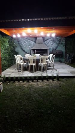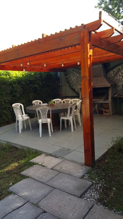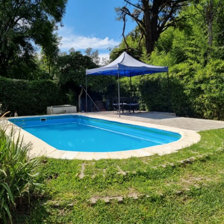 El precio (90 dolares por dia). es orientativo, consultar precios por fines de semana quincena y mensuales. Promociones a partir del alquiler de la semana completa, quincenas o mensuales. EXCLUSIVO PARA FAMILIAS. Capacidad máxima 6 personas a dormir, 12 a pasar el día. Los meses de temporada alta no se alquila solo por fin de semana (diciembre, enero y febrero) Los esperamos con disponibilidad los fines de semana, para los otros periodos de la temporada. La quinta no provee servicio de mucama, ni sabanas toallas ni toallones. Todos los gastos incluidos, solo pagas la luz que consumas. A 3 km del km 50 de Panamericana, donde se encuentran los centros comerciales de Pilar, (Palmas Pilar, Village Cinema, y Torres del sol).Ingreso Rápido. La quinta cuenta con un parque de arboleda frondosa y añeja, de 1.600 m2 , con una pileta de 3.50 x 7.20mts y 1,20 mts de profundidad. Un quincho de 4 x 5 ms, con parrilla. La casa está preparada para 8 personas, vajilla para 12 personas. Porticos en galeria. Lugar muy tranquilo y seguro, contamos con vigilancia por alarma y sensores. Como alquilar: Reservas con el 50% del valor,el otro 50 % lo pagas en el momento que ingresas junto con un depósito en garantía, a convenir según el tiempo que alquiles. Dicho depósito se te devuelve dentro de los tres días siguientes a que entregues el inmueble. Te solicitaremos tu DNI y servicio a tu nombre o donde figure la misma dirección. Condiciones: No es posible : *Realizar fiestas. *El ingreso de mascotas de ningún tipo y tamaño. *Alquilar a grupo de jóvenes *Realizar despedidas de solteros. NO SE ADMITE EL INGRESO AL PARQUE CON VEHICULOS, ESTACIONAMIENTO EXTERIOR, EN EL INGRESO A LA PROPIEDAD Casaquinta de 120m2 terreno 1600m2 Ubicación Barrio La lonja Pilar 3 dormitorios 1 en suite, otro con cama queen y otro con dos camas single , todos con ventiladores de techo o de pared 3 Baños el de la suite, otro completo con bañera y