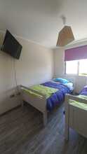 Cuenta con 4 dormitorios y 3 baños, dormitorio principal con baño privado y cama king, uno con 2 camas single, otro dormitorio con 3 camas single y el cuarto con una cama single, todos los dormitorios con closet .