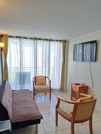 Este departamento se encuentra en un cuarto piso, está amoblado completo y equipado para 5 personas cuenta con 3 dormitorios, 1 baño ,cocina amoblada y equipada, terraza, TV cable e internet, el condominio cuenta con piscina para adultos y niños, quincho para asados, áreas verdes, juegos infantiles, vigilancia las 24 hrs el departamento cuenta con estacionamiento exclusivo .