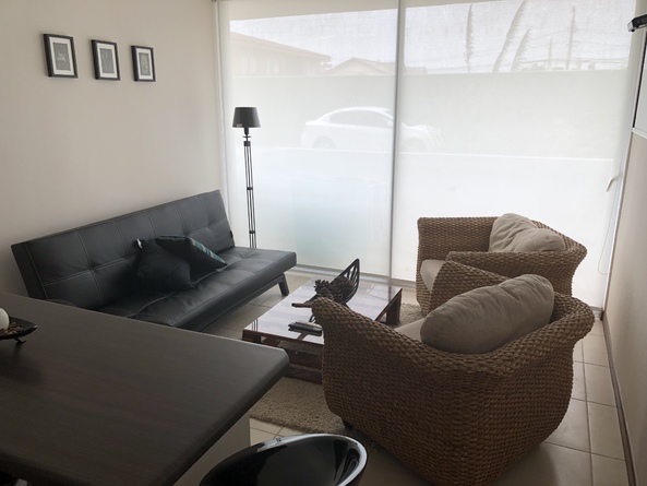 Departamento completamente amueblado, full equipado, en segunda línea (calle Los Arrayanes) a una cuadra de la playa (cerca de cuatro esquinas) y cercano a los mejores restaurantes, discotecas, negocios y casino enjoy , seguridad las 24 hrs , piscina , quincho, tv cable, estacionamiento.