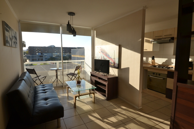 Disfruta de un acogedor departamento con dos habitaciones, walking closet, dos baños uno en suite, living comedor, dos balcones, cocina equipada para 1-5 personas, estacionamiento, zona de quinchos, dos piscinas, área de juegos de niños, cerca a supermercados, biblioteca, museos, a tres cuadras de la playa, excelente ubicación. Ven a disfrutar de este lugar maravilloso, en la Región Estrella de Chile.