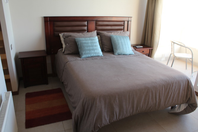dormitorio , con cama matrimonial y un futón en el living, con
