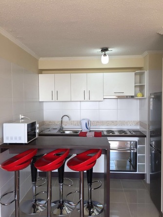 Como departamento para 6 personas con cocina full equipada, piscina quincho estacionamiento, ascensor a pasos del mar, a 5 minutos del supermercado, mall y a 7 minutos del centro.