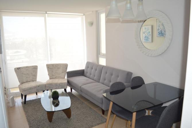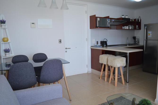 Hermoso departamento ubicado en Condominio Marina Sol 3, cercano al Casino de Juegos Enjoy, piso nº8. Cuenta con dos dormitorios y un baño, equipado para 5 personas, televisión por cable, internet, estacionamiento, quincho, lavandería, piscina al aire libre, y seguridad las 24 horas.