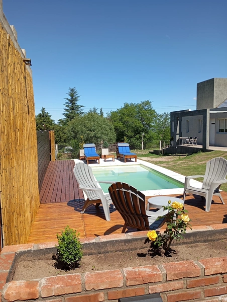 Cabaña para 4/5 personas como máximo con piscina en un encantador entorno de vista a las sierras, ideal para descansar en contacto con la naturaleza, a 10 min. De la ciudad de villa Carlos Paz, 100 mts de Ruta 28, 20 cuadras del balneario Cabalango, 20 cuadras de cascada los Chorrillos, 20 Km de Cosquín, 20 Km de los Gigantes, excelente ubicación!!!