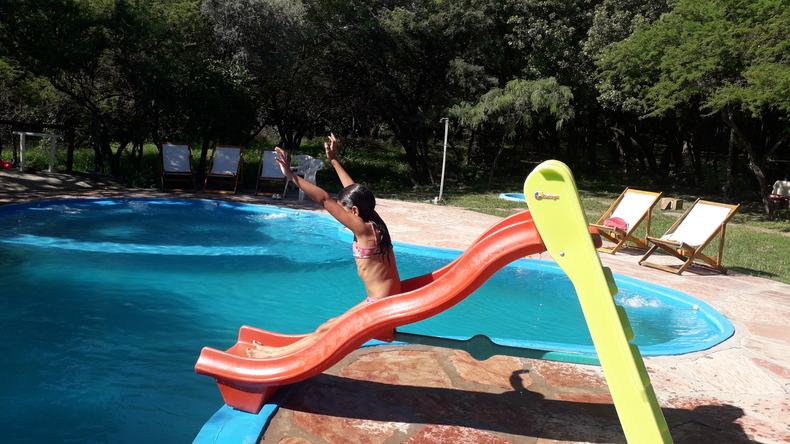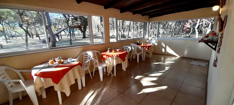 Las Suites tienen su ingreso por una galería vidriada con desayunador, mesas sillas, heladera y pava electrica. En su interior, un amplio baño con bañera, una cama matrimonial con somier de resortes y una cama individual. También Tv y ventilador de techo. Se ingresa preferentemente al mediodía y se deja la habitación libre a las 9:30 hs.