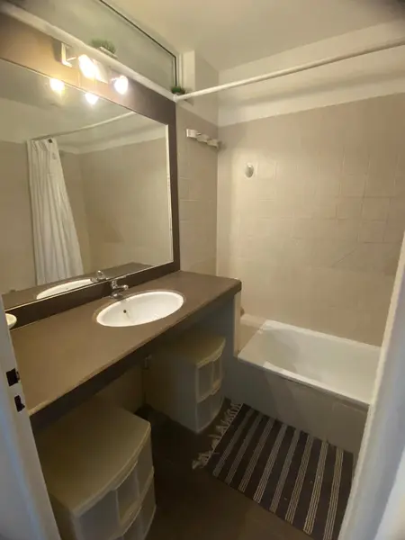 110 m2 con cochera individual, balcón-terraza con parrilla y mesa, con excelente vista de Las Grutas, confortable living comedor con gran abertura hacia el balcón, cocina totalmente equipada, aire acondicionado, estufa, baño con bañera incorporada, calefacción, dos amplios dormitorios con placares embutidos