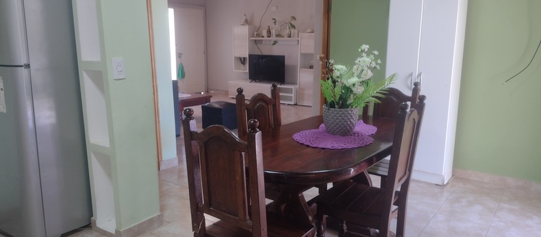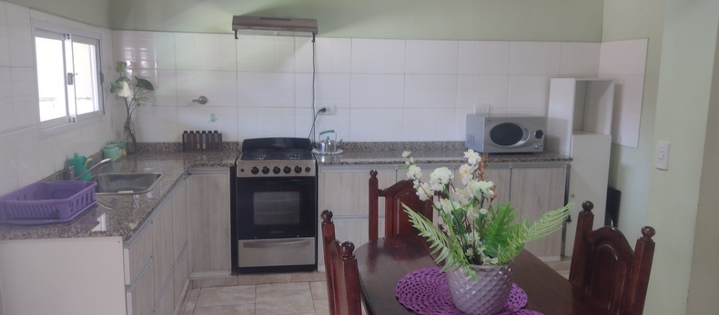 Casa de tres habitaciones para 7 personas ubicada en zona muy tranquila y familiar, a solo 5cuadras del supermercado La Anonima, a 7 cuadras de la terminal. A solo 50mtrs de rotiseria y almaenes. La playa esta ubicada 400 mtrs de la bajada Rinconada. Cuenta con una habitación con cama matrimonial, otra con 3 camas de una plaza, y otra con 2 camas de una plaza. Amplia cocina comedor totalmente equipada para 7. Con microondas, ventiladores, aire acondicionado portátil, wifi, patio con parrilla y estacionamiento no cubierto.