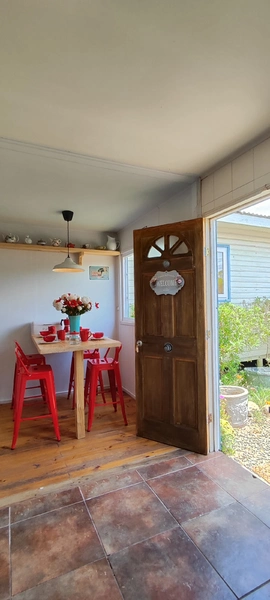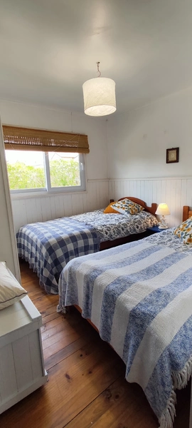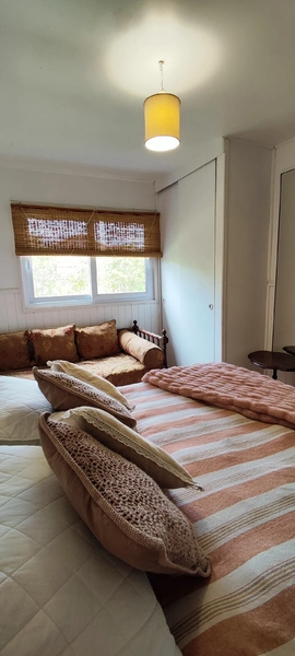 4 dormitorios, dos baños. Living. Comedor y cocina aparte. Terraza super acogedora a salida de living/comedor. Jardines. Mesón tipo camping y parrilla fija para asados.