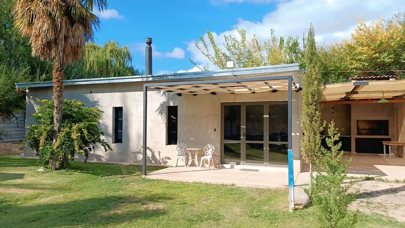 La casa cuenta con patio y vistas a la piscina, y tiene 2 dormitorio, una sala de estar, TV, una cocina equipada con heladera, horno, microondas, pava eléctrica y cafetera, y 1 baño con bidet. Hay toallas y ropa de cama en la casa.
