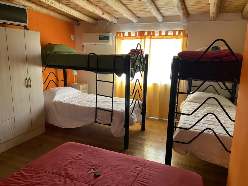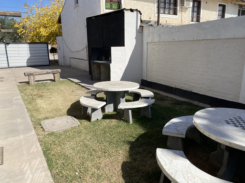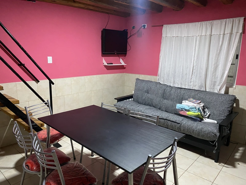 Departamentos totalmente equipados con 1 habitacion (sabana,frazadas etc),cocina (heladera, pava eléctrica, utensilios de cocina, horno eléctrico,etc) baño, living(TV, wifi,futón) patio con mesas,parrilla,cochera. Es un barrio con seguridad.