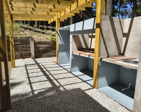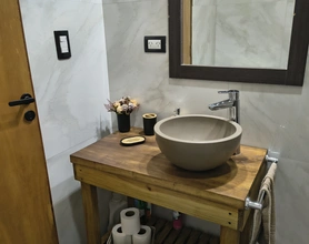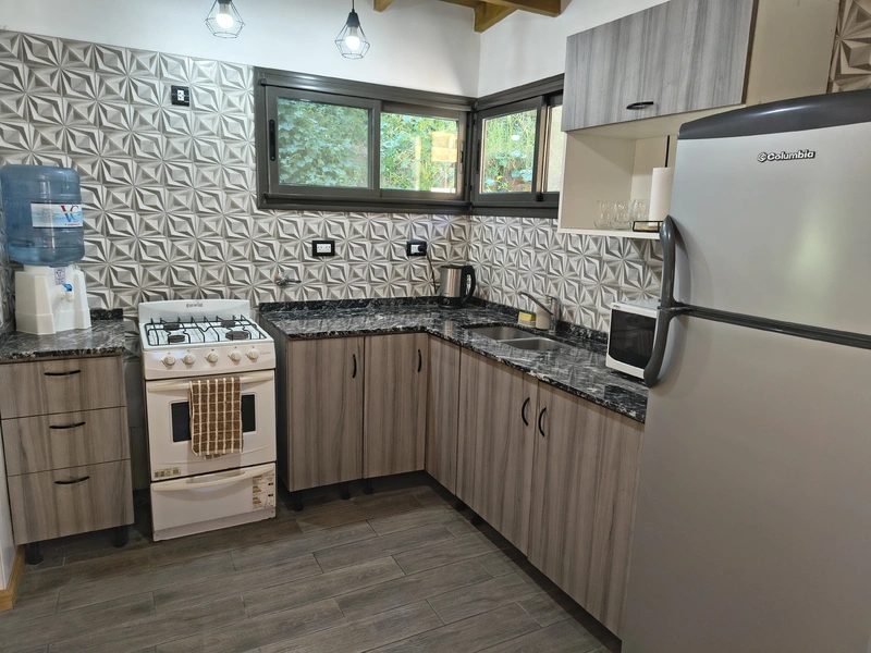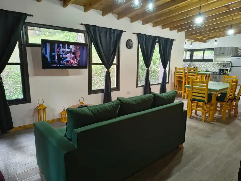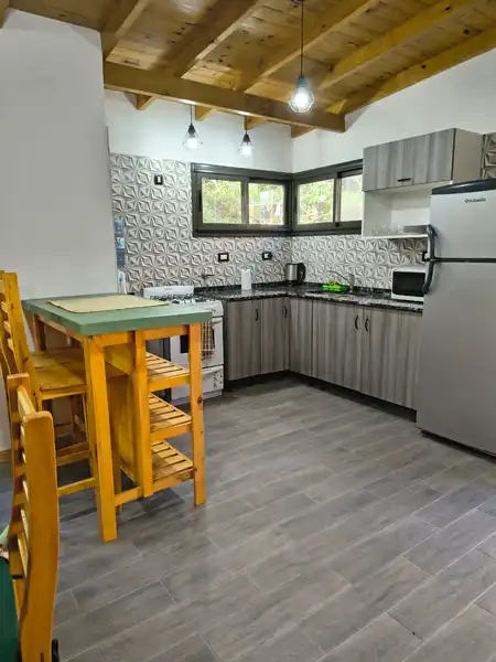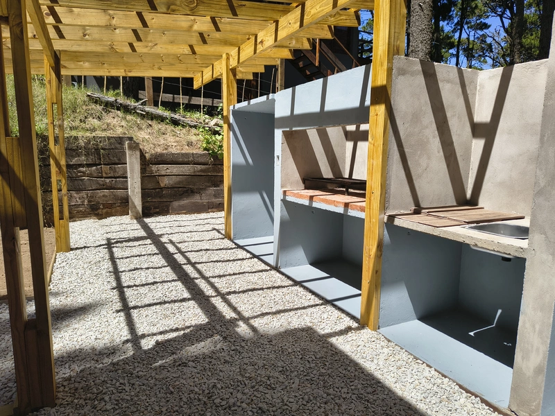 Afuera vas a encontrar una parrilla lista para tus asados y un entorno tranquilo, rodeado de naturaleza, ideal para desconectar y disfrutar al aire libre.