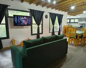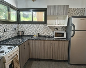 Se alquila casa a estrenar ubicada en el bosque de Mar Azul a 10 cuadras de la playa, cómoda y totalmente equipada para 5 personas, ideal para descansar y disfrutar en familia. Cuenta con un living comedor amplio, con un sillón muy cómodo y TV, ideal para relajarse. Tiene grandes ventanales que llenan el espacio de luz natural y ofrecen una hermosa vista al entorno.