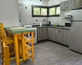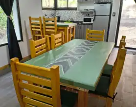 La casa dispone de dos habitaciones: una con cama matrimonial y otra con tres camas individuales, además de un baño completo. También incluye wifi para que estés siempre conectado.