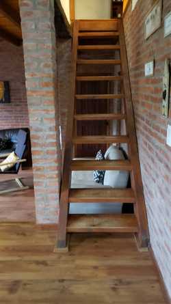 Planta baja: Living con futón de 3 cuerpos, Smart TV de 43”. Baño completo con ducha. Amplia cocina totalmente equipada. Comedor diario con mesa de algarrobo y 6 sillas.
