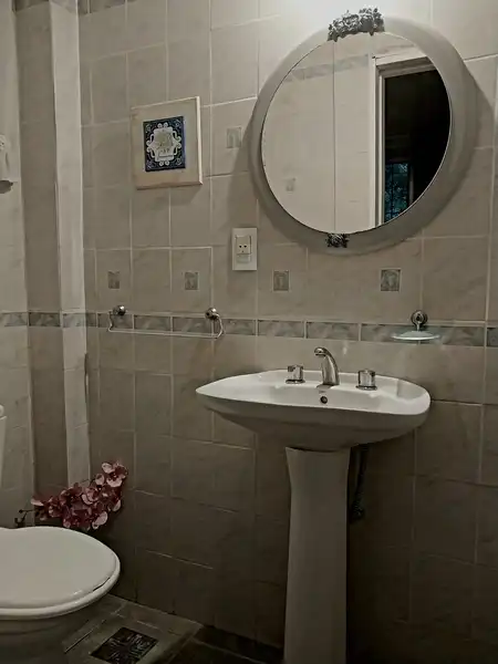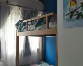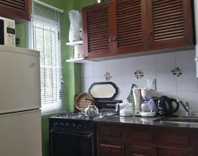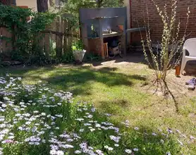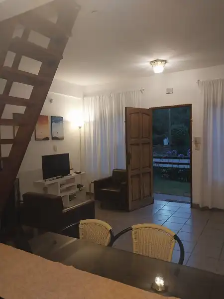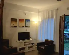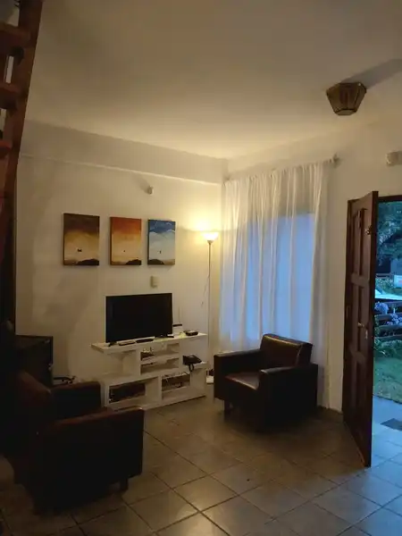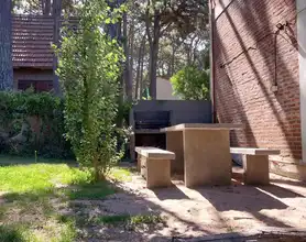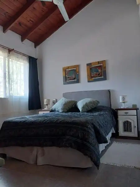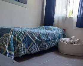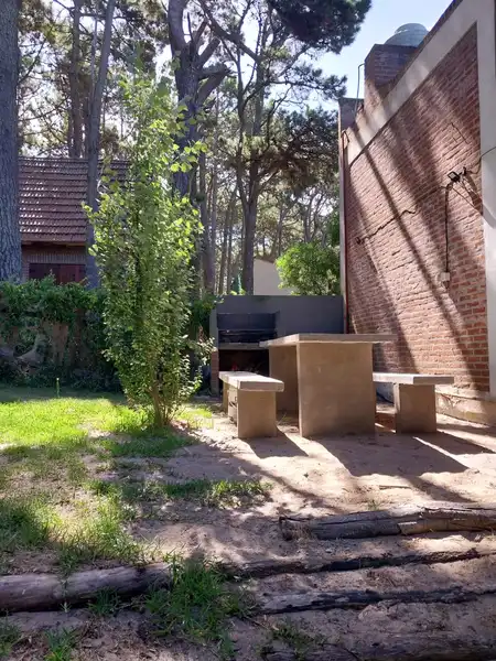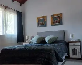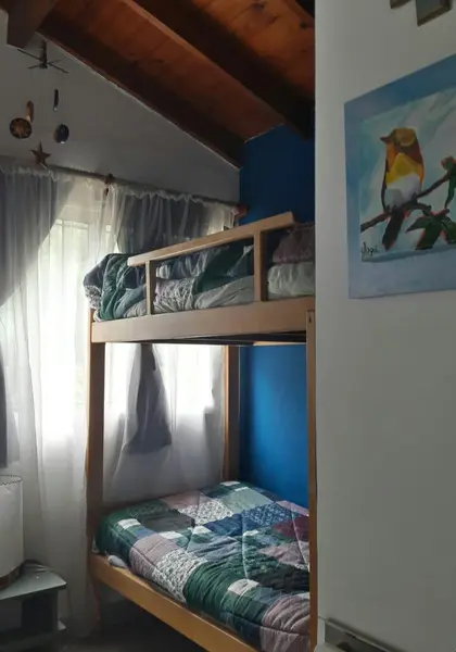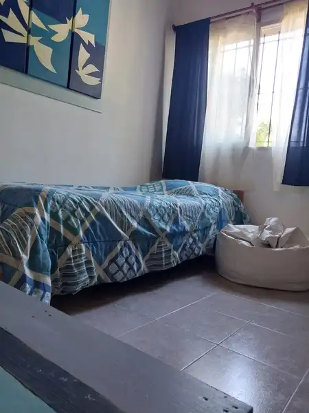Única casa en el lote con dos habitaciones una matrimonial y otra con 2 cuchetas y una cama individual y un baño en planta alta, cocina , living comedor y otro baño en planta baja. Parilla y Jardín amplio en el fondo. entrada para auto (sin techar). No se aceptan mascotas