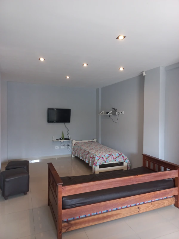 Sofá cama con carrito en living-comedor + cama de 1 plaza.