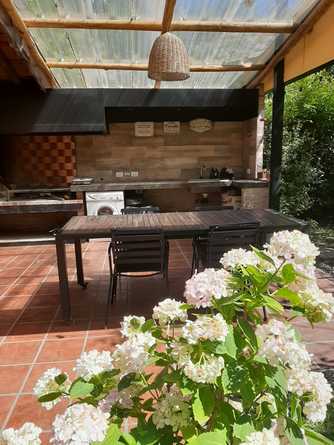 - La casa cuenta con cocina comedor completa, totalmente equipada. Dos habitaciones (una en planta baja y otra en planta alta con baño en suite) y tv en ambos dormitorios y living. Dos baños completos. Lugar para guardar dos autos - Quincho con parrilla. Parque cerrado. Horno de barro.