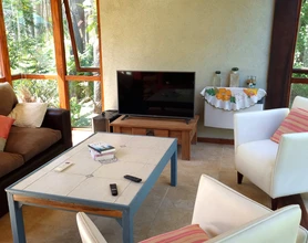 Rodeada de bosques y verde, esta moderna casa se ubica a 150 mts del Mar y 500 mts del centro comercial de Mar de las Pampas. Capacidad hasta 6 personas.