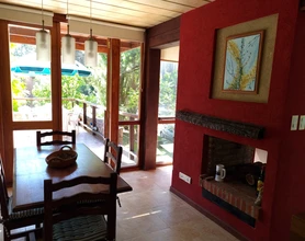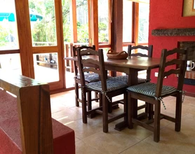 Toillete con ducha. Comedor con salida a terraza. Terraza con Pérgola, parrilla y mesa con sillas y sombrilla