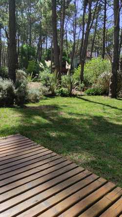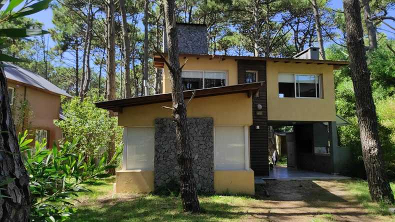 Casa en dos plantas, PB concepto abierto, cocina, comedor living, baño accesorio, posee un futon doble. PA 2 dormitorios y baño principal. Amplios aventanamientos con vistas al bosque. Patio con deck, parrilla y amplio jardin arbolado. TV en Pb y dormitorio principal, Cable, Wi-Fi.