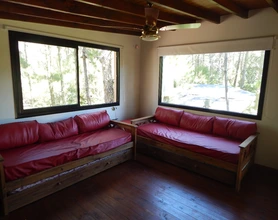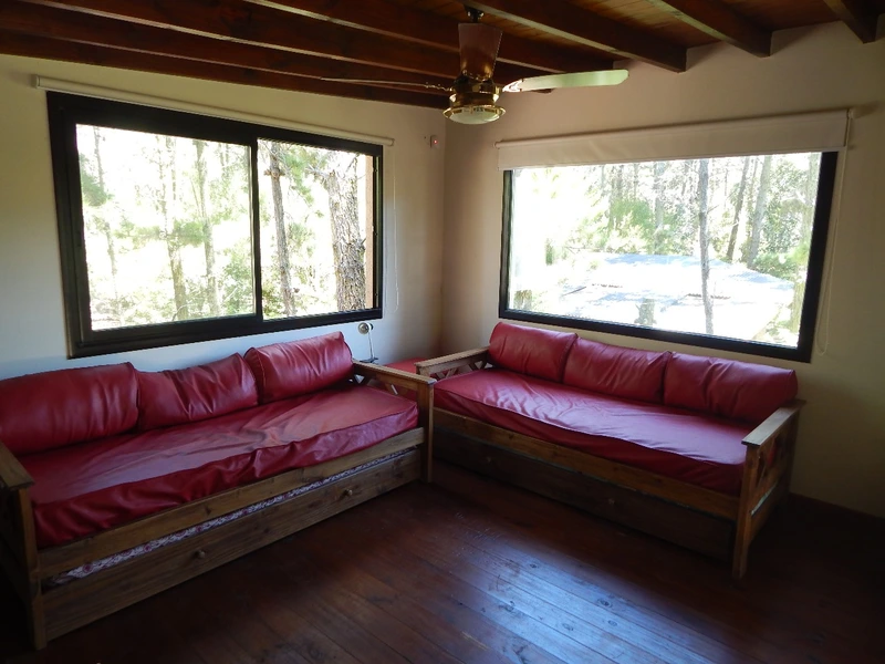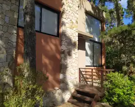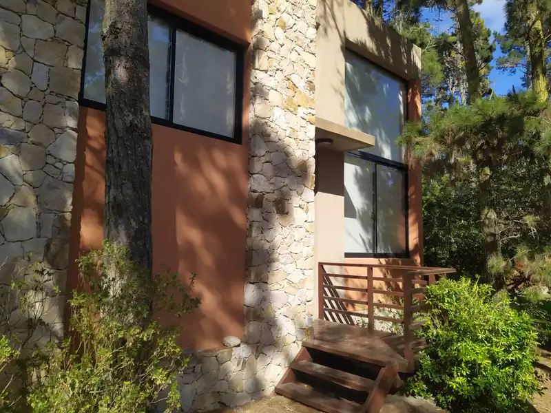 La Piru - Mar de las Pampas Alquilo hermosa casa en Mar de las Pampas, a 4 cuadras del centro comercial y a 5 minutos del mar (en auto). La casa cuenta con 3 niveles que se detallan a continuación: Planta Baja: -Amplio living comedor integrado con la cocina en la planta baja. Con amplísimos ventanales que dan al bosque que rodea la casa. Y con salida al patio de atrás, donde se encuentra el deck con parrillero. Nivel intermedio -Dormitorio con cama de 2 plazas con sommier en nivel intermedio, con placard. TV led 24 pulgadas con cable. -Cómodo baño con mesada, en el mismo nivel. Planta alta -Amplio dormitorio con 2 camas marineras en la planta alta. Duermen 2 adultos 2 niños grandes y 2 niños pequeños. TV led de 32 pulgadas con cable, estanterías con barral, ventilador de techo. La casa está ubicada en calle San Andrés entre Pangaré y Los Alamos. Comodidades: . Living comedor con juego de 2 sillones y futón, hogar a leña con decoración rústica, mesa extensible para 6 personas adultas muy cómodas. TV de 21 pulgadas con cable y reproductor de DVD. . Cocina con vajilla completa para 6 personas, heladera con freezer, microondas, cocina con horno a gas, tostadora, jarra eléctrica, cafetera eléctrica, licuadora, etc. . Dormitorio matrimonial con sommier de 2 plazas, TV lcd de 24 pulgadas con cable, amplio placard con estantes, barral y cajonera. . Dormitorio en P. alta con 2 camas marineras, TV de 32 pulgadas con cable, estantería para la ropa y barral. Ventilador de techo. . Deck exterior en patio trasero, con mesa y sillas plásticas para 6 personas, cómodo parrillero con luz, mesada y lavatorio al costado y práctica ducha exterior con duchador (agua fría y caliente) para lavarse la arena al volver de la playa. Seguridad : Alarma monitoreada 24hs Luces exteriores automáticas (encienden al oscurecer y se apagan al amanecer) Ventanas y puerta balcón corredizas con traba central de seguridad. . Consultar por DISPONIBILIDAD A LA FECHA