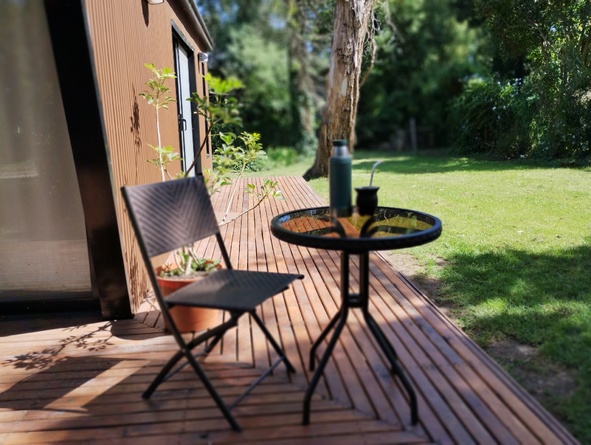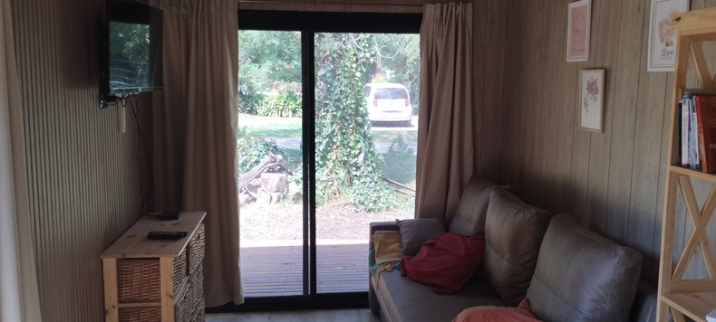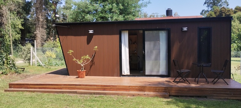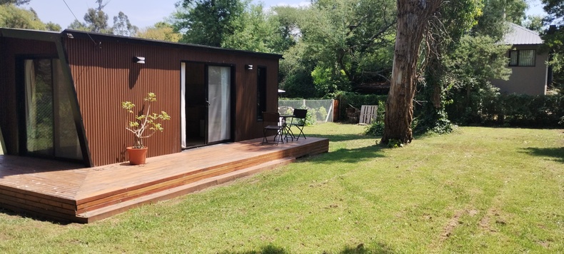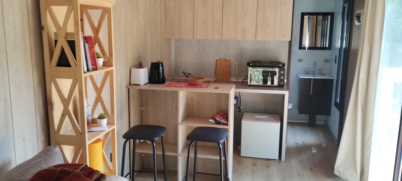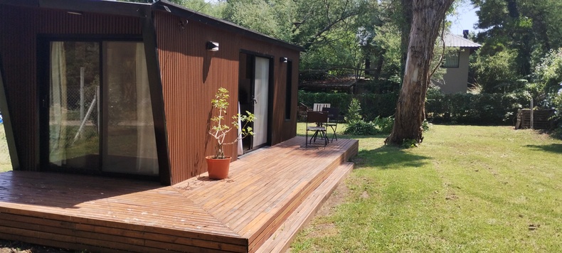 Les ofrecemos un hermoso lugar, ubicado en el corazón del Bosque Peralta Ramos, a tan solo cinco minutos de las playas más lindas de la ciudad, ideal para desconectarse de la rutina y descansar en un entorno soleado y rodeado de naturaleza. Nuestra moderna y hermosa tinyhouse los recibirá con las puertas abiertas. La misma está equipada con anafe, horno, pava eléctrica, aire acondicionado, calefacción, heladera, TV con cable, WiFi, barra desayunadora y parrilla. Posee un hermoso parque en donde, además de disfrutarlo, podrá acomodar su vehículo, quedando dentro de la propiedad. La calle donde se ubica la misma, es de unos 150 metros, y se encuentra cortada de ambos lados, lo que aumenta la tranquilidad de la zona, ya que no es utilizada como corredor de paso. La cabaña esta localizada a unas tres calles del mercado Chañares y a dos calles de la tradicional Plaza de los Artesanos, símbolo cultural de la Reserva Forestal. La tarifa incluye desayuno seco y ofrecemos dos opciones de desayunos completos por pedido. También realizamos cenas exclusivas con reservas previas y servicio de proveeduría.