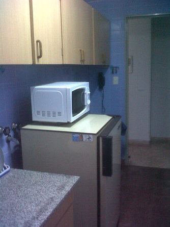 4. cocina separada (cafetera eléctrica, microondas, mesa con su banquetas) Vajilla completa para 4 personas