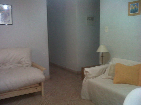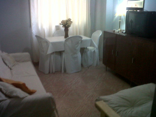 3. Living-comedor con sofá cama 1 1/2, 1 futón cama 1 plaza, juego de comedor, con TV 21’ con DIRECTV Prepago,