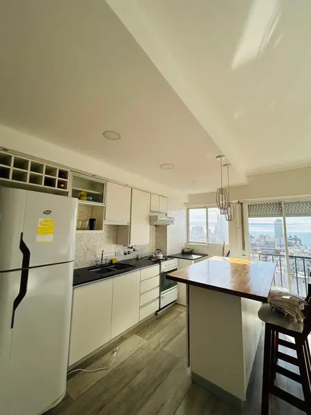 Departamento de 2 ambientes en zona céntrica, ubicado en el piso 16, ideal para cuatro personas. Ofrece una espectacular vista panorámica del centro de la ciudad y del mar, una oportunidad única que no podés dejar pasar para disfrutar