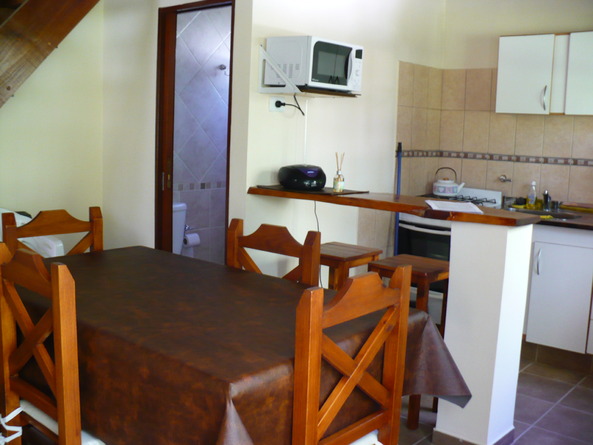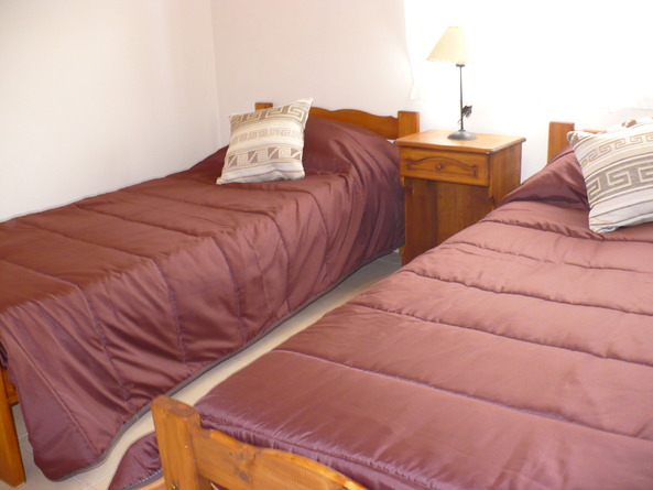 Alquilo chalet tipo cabaña a estrenar para 4 personas, a 600 mts. de las mejores playas del sur de Mar del Plata (La Caseta, La Reserva, Mirador 9, Abracadabra, El Taino, Alfar), baño completo con vanitory, dormitorio con una cama de 2 plazas, otro dormitorio con dos camas de 1 plaza, ventilador, radio y reproductor de cd/MP3, comedor con televisión por cable, cocina completa con desayunador, termotanque, microondas, cafetera eléctrica, tostadora eléctrica y exprimidor de jugo, gas natural, alarma, parque, parrilla, entrada de auto. WiFi.