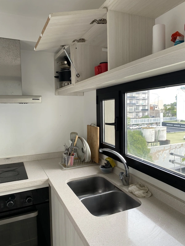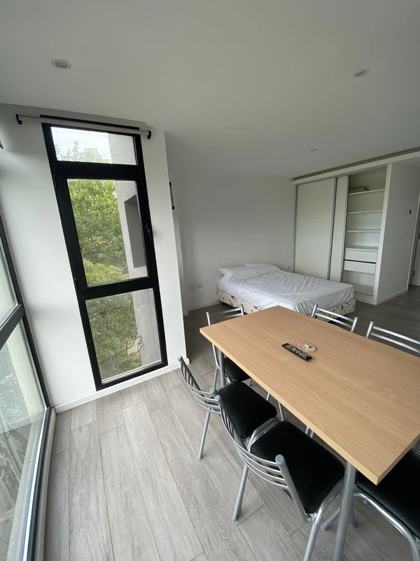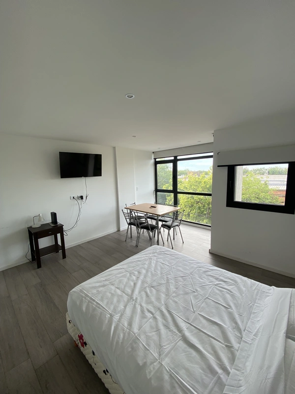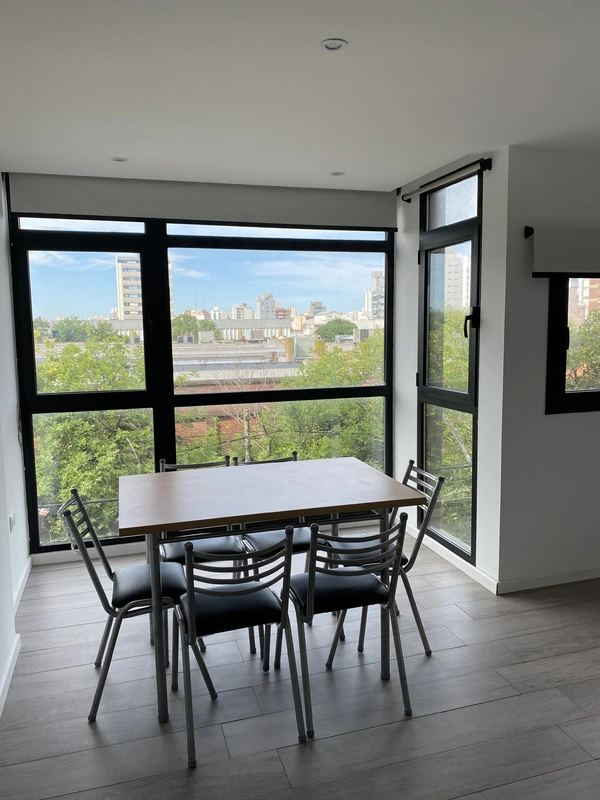Moderno monoambiente seminuevo, equipado con cocina eléctrica, heladera con freezzer, pava eléctrica, vajilla completa, toallas, sabanas, sommier de dos plazas y media, mesa con sillas, amplios ventanales a la calle, wifi, tv con Netflix, Youtube, Spotify, etc. Pequeño balcón interno, ingreso al edificio con llave magnética, ascensor, departamento ubicado en el 2do piso.