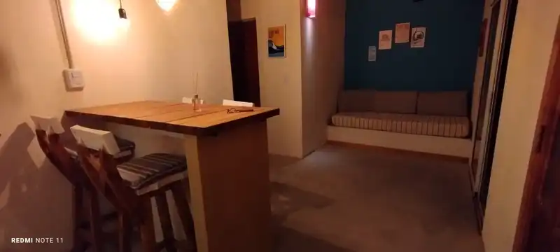 La casa cuenta con dos habitaciones , baño completo y cocina comedor con barra desayunadora desde donde se aprecia el parque.