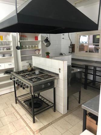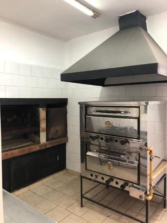 Parrilla interna con sector de lavado y mesada, horno pizzero doble.