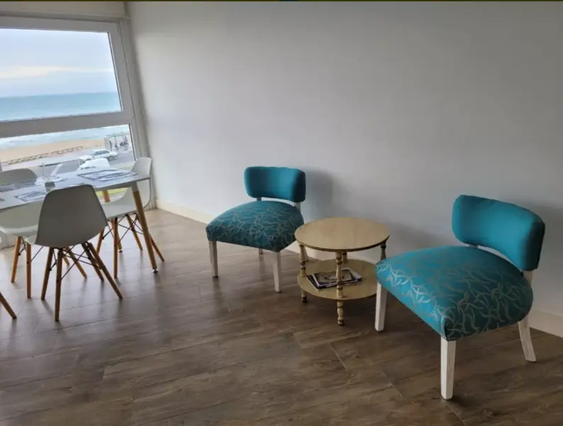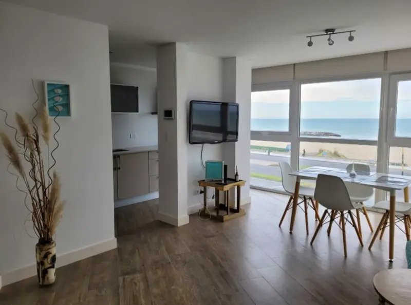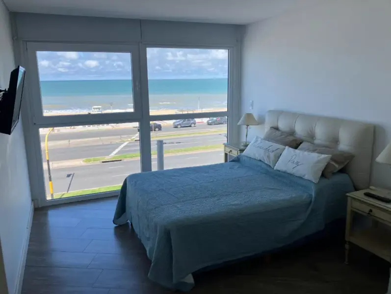 Departamento de calidad superior, hermoso dos (2) ambientes muy amplios frente al mar, dormitorio con baño en suite, somier matrimonial, equipado para dos personas ubicado en la zona Perla norte, frente al balneario Bahía Bonita. Edificio nuevo de categoría de pocas unidades funcionales. Portero visor, cámaras de seguridad. Ascensor de última generación. Excelente calefacción por loza radiante.
