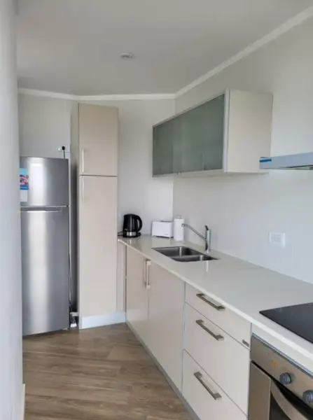Esta equipado con aire acondicionado frío/calor, wifi de 100 megas, puerta blindada, aberturas de Pvc de doble vidriado hermético, carpintería de madera, puertas laqueadas. Heladera con freezer. Horno y anafe eléctricos, microondas, pava eléctrica, tostadora, tiene 2 smart tv, vajilla completa para 2 personas, calefacción por loza radiante. Muebles de cocina a medida marca Johnson. Tiene pisos de porcelanato, el baño cuenta con bañera y toilete. Somier con colchón nuevo. Excelentes vistas panorámicas. Espectacular vista al mar desde el living comedor, cocina y habitación principal.
