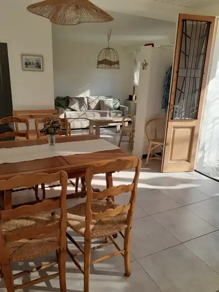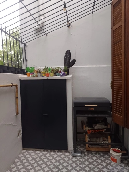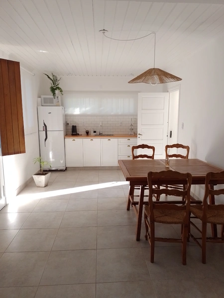 Cocina comedor, patio adelante y otro atrás con parrilla.