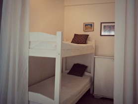 Dormitorio matrimonial: con cama matrimonial, colchón, 2 almohadas y cubrecama, mesas de luz y tapetes, piso de parquet. 3 Camas de 1 plaza con colchones, almohadas y frazadas. El comedor y sala de estar: mesa con 5 sillas, cocina separada y tiene una heladera con freezer, microondas y cocina con 4 hornallas y horno y bajo mesada con alacenas amplias.