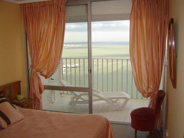 Departamento de 3 ambientes con dependencia y vista PLENA de todos los ambientes al mar y la ciudad con balcón terraza corrido. Muy equipado. 2 leds con cable e Internet Wi fi dentro del depto. Microondas Gran heladera con freezer Cafetera Pava electrica etc. Whatsapp [utilice el form. o tel. de contacto]. No se aceptan jovenes solos